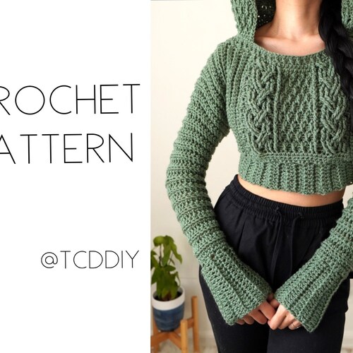 Crochet Pattern Cable Stitch Cropped Hoodie Pattern Pdf Etsy Finland